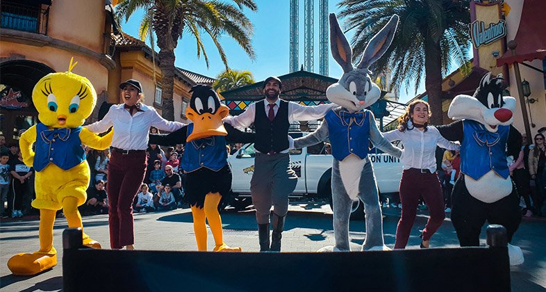 Los Looney Tunes se unen a la celebración del “Mes de los Super Héroes VS Super Villanos DC” vistiéndose como su superhéroe favorito; también los visitantes podrán disfrutar de la exposición de logos gigantes y escuchar las bandas sonoras de sus películas; además de vivir en primera persona la lucha entre Batman y El Joker, en Gotham City™ Stunt Show.